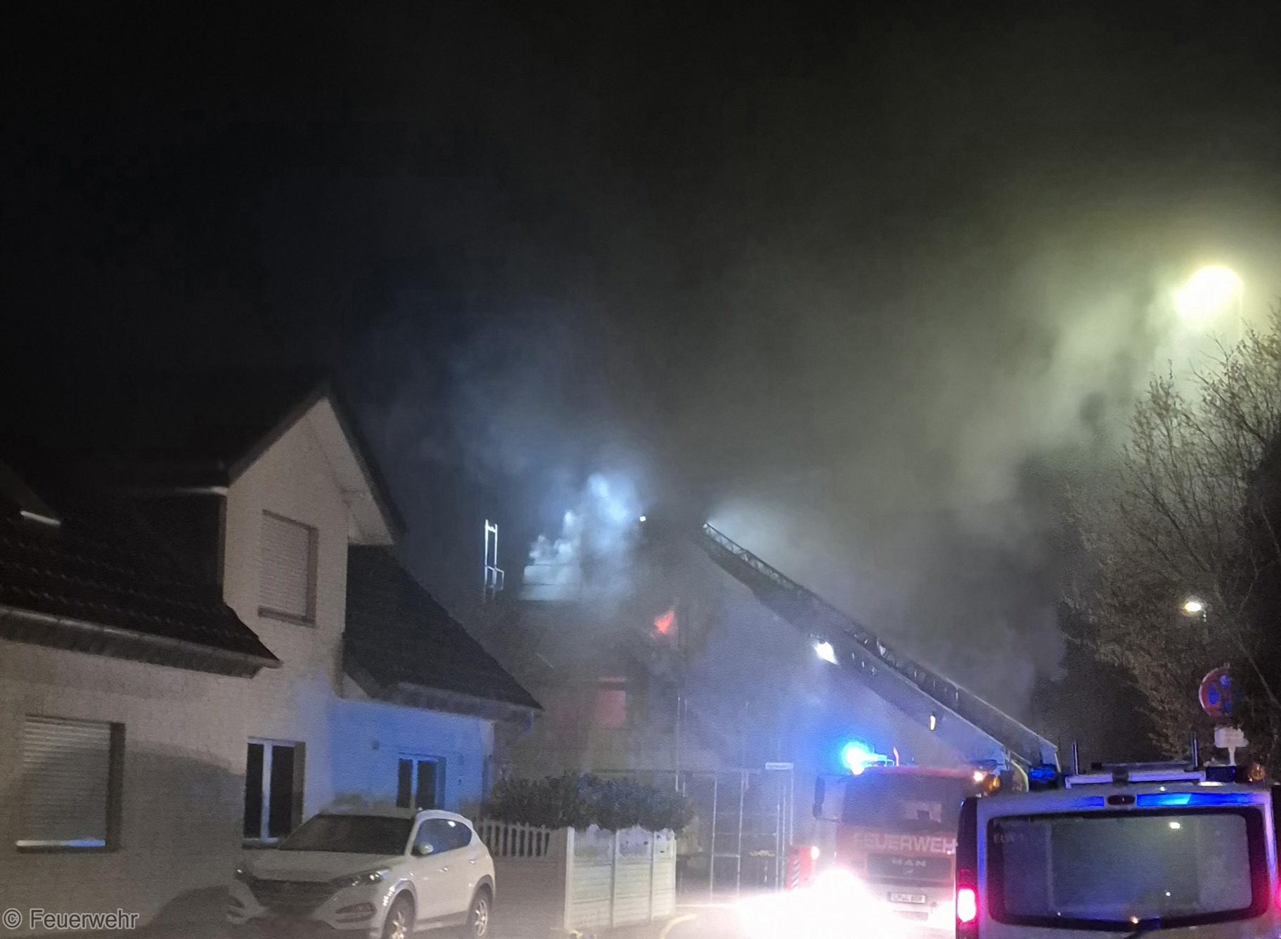 Nachdem bereits am Nachmittag ein Feuer in dem Dachstuhl eines Rohbaus erfolgreich gelöscht werden konnte, meldeten Anwohner um 22:08 Uhr erneut eine starke Rauch- und Flammenentwicklung aus dem betroffenen Gebäude.