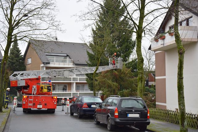 Bei einer der etwa 15 Meter hohen Tannen hatte sich der Wurzelteller bereits aus dem Boden gehoben. Die Tanne wurde gefällt. Von den anderen Tannen geht keine akute Gefährdung aus.